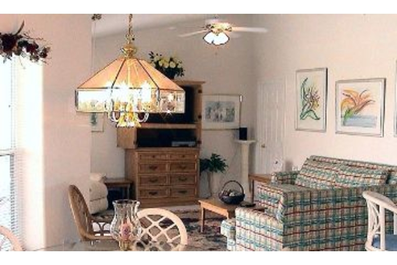 This beautiful vacation home is spacious with modern decor and furnishings throughout. There are two Master Suites, each with their own bathroom for added convenience. Amenities include a large LCD screen TV, DVD player, VCR, stereo, and wireless Internet access. Challenge your guess to a game of pool in the game room or watch one of your favorite movies in the living area. The kitchen is fully equipped with everything you need to feel right at home during your stay. With the added bonus of a very private screened pool, Jacuzzi and deck area, overlooking the lake this home has what it takes for a fantastic stay in paradise.Surrounding Description