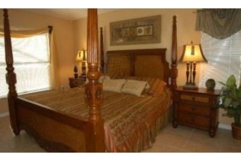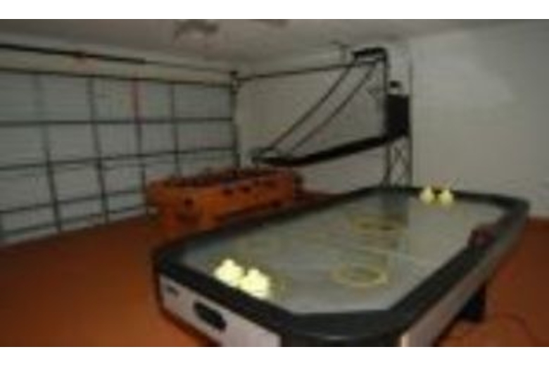 Step out from the family room onto the pool deck, there you can sit on the comfortable deck furniture or take a dip in the sparkling heated pool or the raised bubbling spa that cascades into the main pool. Sit together and enjoy an alfresco meal on the deck of Goofy's Guesthouse. Should you need it, the pool has a removable safety fence for added protection for small children, and all doors leading to the deck area have additional safety locks and switchable alarms. If the kids want to "burn-off" some energy, let them play in the garage on the air-hockey table or the basketball shoot-out game. Sleeping accommodations at Goofy's Guesthouse include a master bedroom suite with a king-size bed, night stands with lamps, telephone, clock/radio/alarm, dresser, cable TV and DVD player. The master bathroom has a mirrored vanity basin, walk-in shower, roman tub, and walk-in closet space. A second large bedroom suite affords a queen-size bed, night stands with lamps, dresser, cable TV and DVD player, closet space, and adjacent bathroom with vanity basin, shower/bath. A third large bedroom affords a full-size bed, night stand with lamp, dresser, cable TV, and closet space. The remaining 2 bedrooms are perfect for the kids, with 2 twin beds in each, night stands, dressers, and nearby family bathrooms.Surrounding Description