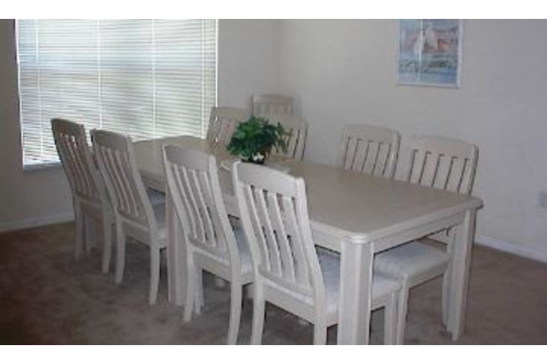 The master bedroom has a king size bed and large en suite bathroom. The second bedroom has a queen bed and the 3rd, 4th and 5th bedrooms have twin beds, with décor to make you feel at ease and in holiday mode. The kitchen is a fully equip eat in kitchen that includes all of the conveniences of home. The pool deck is spacious and covered by a netted lanai to let you enjoy Florida to the fullest. Every thing you could need for your home away from home is supplied in this lovely house, all you need do is bring yourself and relax.Surrounding Description