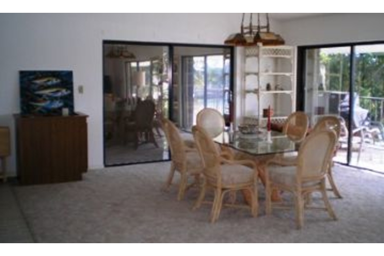 Come enjoy the breathtaking water views from this three bedroom and two bathroom vacation home. With the beach only five houses down this vacation rental is perfect for those looking to be close to the water. Come relax in the spacious living room that offers a television, DVD/VCR player, and patio access. The dining room has a beautiful glass top table that will seat six guests at mealtime. The fully equipped kitchen has plenty of counter space perfect for meal preparation, and a breakfast bar with additional seating. The bedding, which will sleep eight guests, includes two-queen beds, two twin beds, and a queen sleeper sofa. Come sit out on the patio and enjoy the fresh air. This home also offers 37' boat dockage, carport parking, trailer parking, a bait table, a bait freezer, BBQ, clothes washer and dryer, and central A/C.Surrounding Description