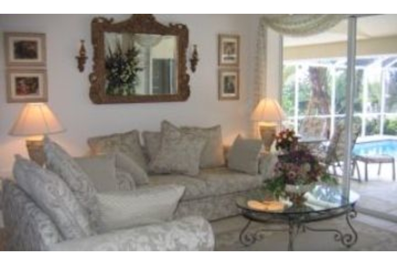 Very nicely decorated three bedroom two bathroom home on the water with an electric heated pool, boat dock and lift. Two bikes and a Pack-n-Play available!