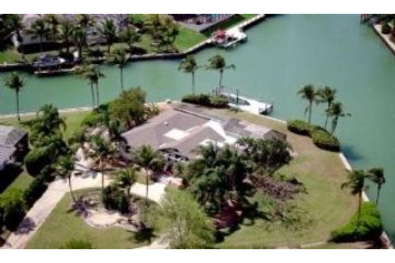 Marco's exclusive estate section location. One acre tip lot with 300 feet of water frontage with a dock perfect for fishing and a lift for a boat. Lovely Southwest exposure view with some view of the gulf which is just three minutes out by boat. Relax by the pool, and enjoy the magnificent sunsets and dolphins playing at the water's edge. Pool is not screened in. It is open so you can really enjoy the view.