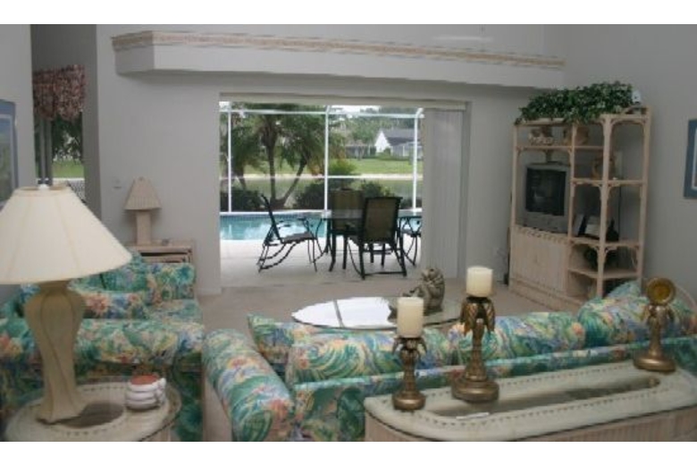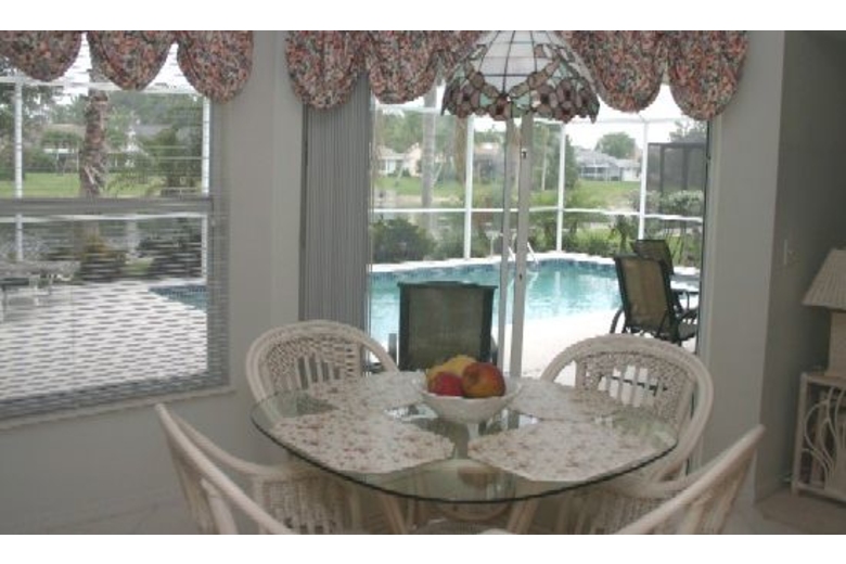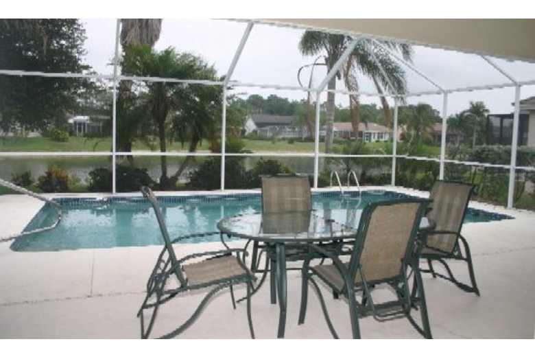 This 3 bedroom 2 bath home also has a private pool. The Master Suite has a King size bed with outstanding view of the pool area and lake. The queen Bedroom shares the same calming view on the other side of the living room and the third bedroom has two twin beds. Outside you can relax on the screened lanai, cook on the gas gill or lounge by the pool. Inside you can enjoy your favorite music on the stereo or enjoy whatever is playing on cable television.Surrounding Description