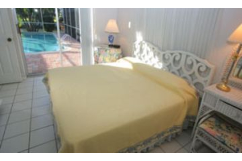 This spacious home is the perfect location to bring your family and come and enjoy beautiful Naples. It features three bedrooms and two bathrooms and provides sleeping accommodations for up to six people. The master bedroom has a large king size bed and a sliding glass door for easy access to the pool and patio. The second bedroom has a full size bed and the third has two twins. Each of the bedrooms also has a television. The chef in the family will love preparing the meals in the beautiful kitchen with stainless steel appliances, granite counter tops and tile floor. There is also a grill out on the patio and a washer and dryer available for your convenience.Surrounding Description