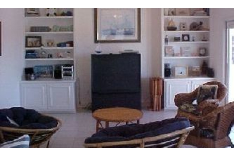 Access to the sound is just off of the large back deck and is the perfect place for the kids to be able to swim and play in the sand without the worry of waves. DVD player with VCR in the living room. This house has a fully equipped kitchen. There are comfortable furnishings for your enjoyment. This house also has a private boat slip and dock.Surrounding Description