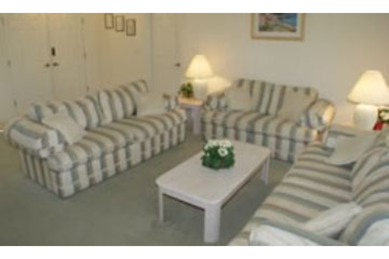 This three bedroom, two bath home can sleep up to six people comfortably. The first bedroom has a TV and queen bed. The second bedroom has a double bed and in the third bedroom there are two twin beds. There is a fully equipped kitchen with a microwave, freezer and refrigerator. The dining area has a table and six chairs. The living area offers plenty of room to spread out while watching TV. There is a one-car garage available with this home as well.Surrounding Description
