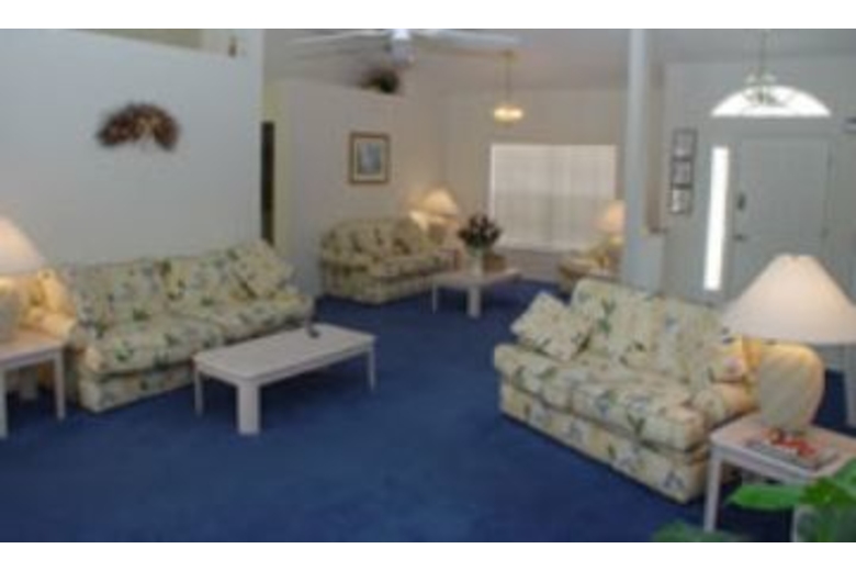 This three bedroom, two bath home is a great place to call home for a week. The living area has a VCR, TV and ceiling fan. There is a dining area with a table and six chairs. The fully equipped kitchen comes with a microwave, refrigerator and freezer. The first bedroom has a queen bed and TV. The second bedroom has a double bed and the third bedroom has two twin beds. There is a one-car garage, swimming pool, screened porch and outdoor furniture available with this home.Surrounding Description