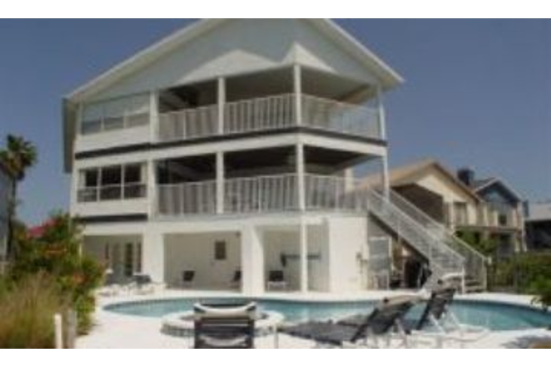 This heavenly two-story home can be found on a small lagoon. There is a boat dock where you can enjoy fishing and boating while staying here. You may also enjoy relaxing on one of the two balconies with this home. There is also a deck with outdoor furniture and a swimming pool.