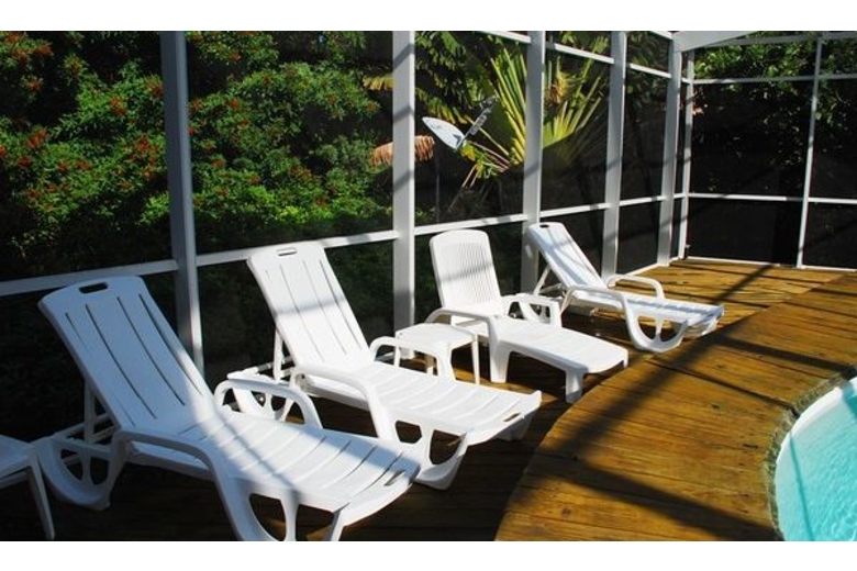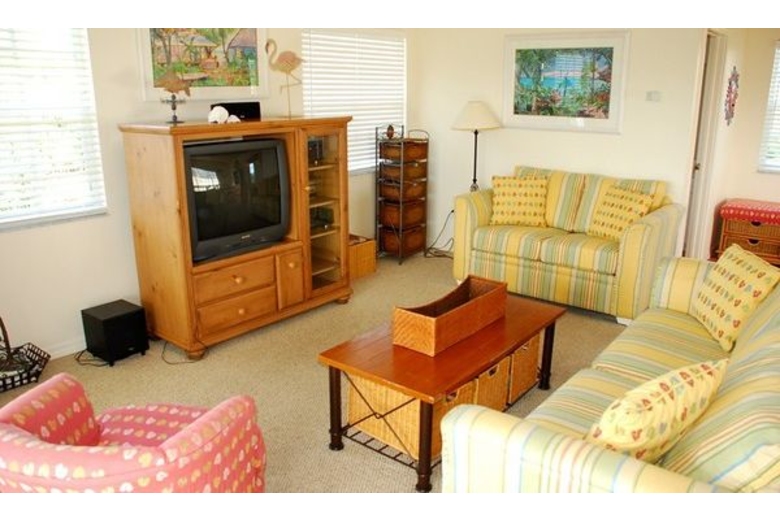A lovely screened deck area surrounds the ground level heated pool and Hot Springs spa. An outdoor Jenn-Air grill and poolside refrigerator affords every convenience. The warm glow of the terra-cotta ceramic tiling greets you on the entrance to the second level where three bedrooms and two baths (each with double sinks) give you ample room to unpack and rest. Coordinated bedspreads and sheets add to the island atmosphere. Carpeted stairs lead to the third level where a great room, dining area, spacious kitchen, and full bath with shower await you. Top of the line kitchenware, accessories and tableware for cooking and dining have been provided for your enjoyment. A large screened porch is accessed through sliding doors that open off the great room. The porch is complete with kitchen pass-through and counter bar with bar stools. Just like North Captiva Island, Margarita's will captivate you with Caribbean-like charm in its decor, and its location nestled among cabbage palm tree stands and lush vegetation. Every detail has been addressed with the guest in mind. Your morning can begin with coffee on any of the four levels of the house living area. A spiral staircase brings you to the crow's nest room on the fourth level. Not only does this room offer a place to retreat in comfort, but it also serves as the fourth bedroom. In addition, this level has a large deck for viewing the beauty of the Gulf and Bay. Professionally decorated and ready to provide you with everything you need to relax and unwind, Margarita's is the paradise you deserve to experience! Come and feel the island's magic!Surrounding Description