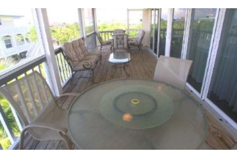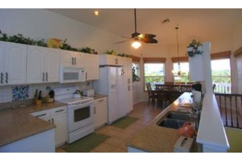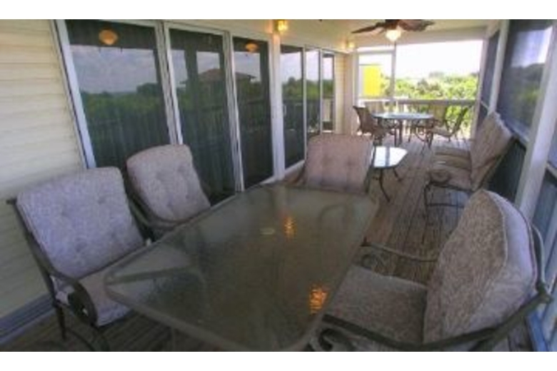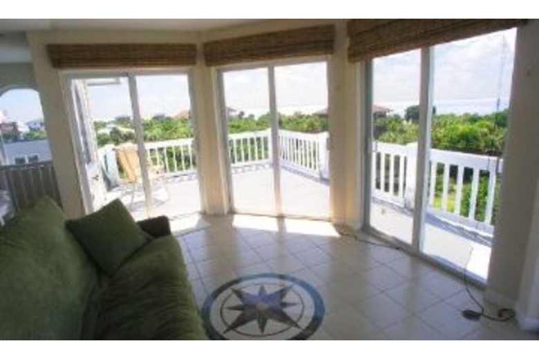 Fish Tales beckons through a colorful front entrance door to the bedroom level. To your right find the den/fourth bedroom which offers a daybed and hideaway cot. Adjacent is the third bedroom with queen bed. Next is the second bedroom with twin beds. The master bedroom with master bath opens onto a screen deck complete with Jacuzzi spa. A hall bath and laundry complete this level while a wrap-around deck/walkway encircles it. Upstairs, a spacious kitchen is located between the dining and living areas while the full bath on this level is just steps away. The airy, light living room features a coral fireplace at one end and at the other, spiral stairs to the captain’s deck above. Enjoy remarkable views from the inside captain’s deck or step outside to the sun deck. This house is one to remember.Surrounding Description