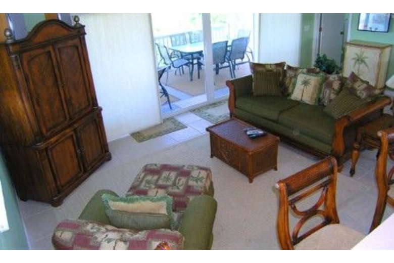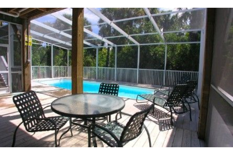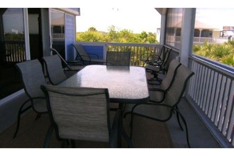 Lovely tropical décor with bright uplifting colors will take you on a fantasy journey that will slow the clocks... till you are on Island Time. This wonderful, brand new 4 bedroom and 3 bath home will be just the right place for your family getaway. The grounds of this home include a screened swimming pool and deck area for relaxing and having fun in the sun. When you enter the house, you are on the second or sleeping quarters’ level. The master suite has a king size bed, a spacious and private bath with double sink vanity. The second bedroom is ideal for a children’s room with twin beds and an under the sea theme. The third bedroom has a full size bed and tropical decor. The hibiscus suite with a queen bed is ideal for a second couple. Upstairs, the great room with vaulted ceilings and sliding glass doors steps out to the screened outdoor dining area with dazzling views of the Gulf above the island foliage. Relax on the screened porch; dine al fresco while you enjoy the views. Island Time’s kitchen is equipped with every convenience and features everything you will need for cuisine preparation and elegant island dining. Nearby the well-dressed dining room table accommodates 8, with additional seating at the counter’s bar. The spiral staircase leads you to the sun deck where you can spend Island Time enjoying the panoramic views of the island, Gulf waters, and Bay. View Sunsets EVERY night of your stay and make memories that will last forever.Surrounding Description