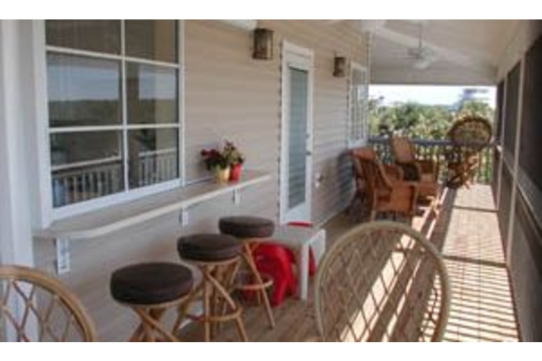 Caretta Caretta is a brandnew Key West style island home set up as a comfortable island vacation rental. You can still be one of the first to enjoy this home with its lovely furnishings. The home features a wide wrap-around porch accessed by French doors on every side. The first level interior includes a spacious living/dining area, kitchen, one bedroom and bath. Attrative decor with Far Eastern flavor. On the second level are two more bedrooms, a study area and a bath. A lovely third level patio offers views of sunsets, water in all directions, and island scenery.Surrounding Description
