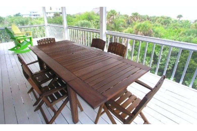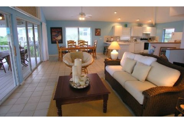 This alluring house is alive with the spirit of Cuba. Artfully decorated throughout with a distinctive Cuban flavor you’ll feel as if you are on the famed island itself.On the lower floor are the 3 bedrooms of the house. The master bedrooms boasts a king size bed, private, and has direct deck access. The second bedroom has queen size bed, and direct deck access. The third bedroom is furnished with 2 beds.The upstairs has an open floor plan. The kitchen is fully equipped and has tile countertops. The living room has an entertainment center with surround sound and DVD. The entire top floor looks out onto the ample screened in deck that provides views of the Gulf.Surrounding Description