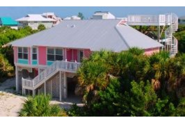 Flamingo House is a brand new home with a special island flair. Carved Flamingos on the eaves, conch shells, pineapples and palms carved in the railings. Truly a beach house 200 steps from the Gulf beach.