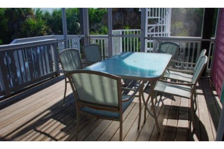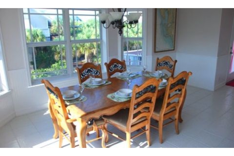 First floor includes heated outdoor pool with deck and charcoal Weber grill. Second floor is living area and bedrooms. Open plan kitchen with bar serving 6 and adjacent dining room for 8, large living room with entertainment center including satellite TV, DVD and Karaoke. Lanai covered deck with outside eating overlooks the pool. The master bedroom includes queen size bed, walk-in closet, private bath with separate Jacuzzi, and walk-in shower. The other bedrooms have a queen and 2 twins. The living room has a queen sleeper. Also included are a washer and dryer, linens and beach towels. Above it all is an observation deck with breathtaking views of the Gulf, Pine Island Sound and North Captiva Nature Preserve.Surrounding Description