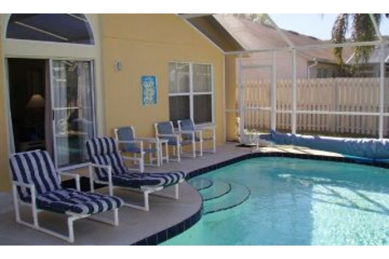 This home has three bedrooms and two bathrooms and provides sleeping accomodations for eight people. The luxuries you will enjoy while staying here include a screened in swimming pool, air conditioning, linens, a washer and dryer, telephone, full kitchen, micowave, coffee maker, VCR, DVD player, 4 color TV's, stereo, patio furniture and garage.Surrounding Description