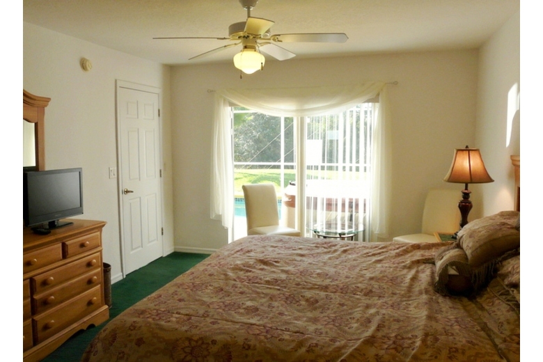 Lake Master Bedroom – Located on the first floor, with breathtaking views over the pool and lake, this tasteful room features a queen size bed The en suite bathroom features a bath / shower combo, single sink and w.c.