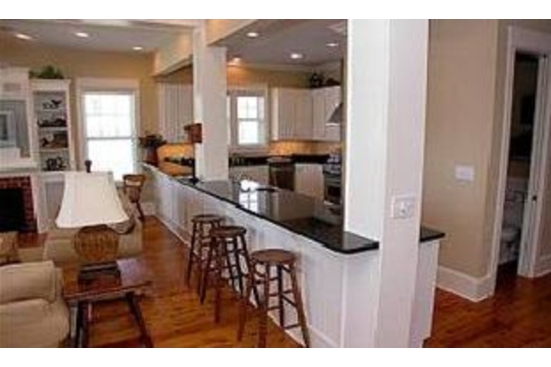 The living areas are open and revolve around a magnificent kitchen. This beautiful kitchen has top of the line appliances, cabinetry and granite counter tops. There is an additional ice maker, wet bar, and wine refrigerator for your entertaining convenience. The living areas are comfortable with great gulf views, large open decks and even a fireplace for cooler months. There are four bedrooms, each with their own private bathroom.Surrounding Description