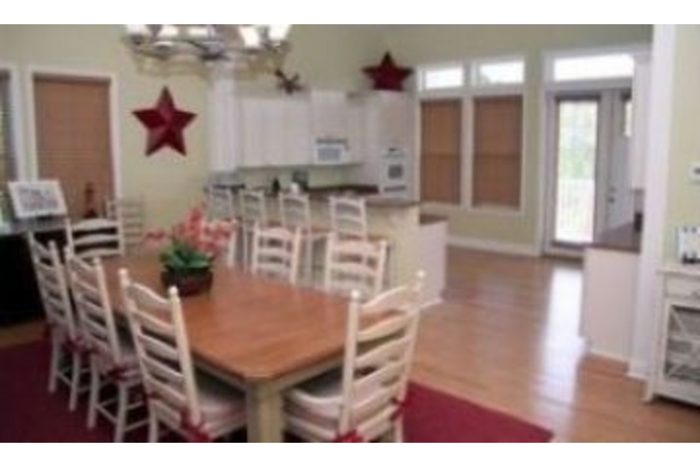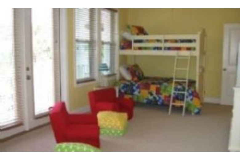The third floor is a huge Master suite that has a King bed, with Kitchenette and a spacious master bath. The middle level is a spacious living, dining and kitchen area with a gas fireplace; farmhouse dining room table that seats 10 with bar seating for 4.The kitchen is extremely well equipped. The lower level has two gulf front bedrooms with private baths and the third bedroom is a kid's bunk room that sleeps 6, with its own bath. All bedrooms have their own TV and DVD. the house also has DSL.Surrounding Description