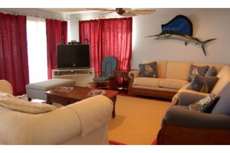 This gulf front home features four bedrooms, three baths. Two of the bedrooms are suites with private sitting areas. One of the sitting areas has, for your convenience, a desk with a fax machine.Surrounding Description