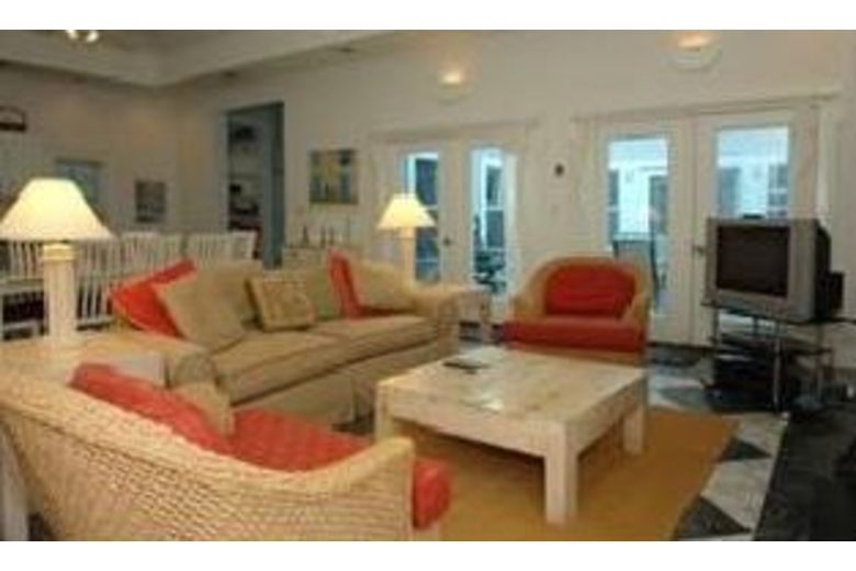 Three bedrooms (including large loft), 1.5 baths plus screened shower in interior courtyard. Spacious master bedroom has one queen plus additional full fold-out futon. Second bedroom has one queen. Large upstairs loft has one full and two twins -- perfect for kids. Appealing features include a comfortable front porch and screened-in back porch, plus a private enclosed courtyard deck and an even more private second floor sundeck. Long hall offers desk/work space and separates sleeping quarters from great room. Great room features well-equipped open kitchen, and cozy living area centered on a working fireplace. French doors open onto interior courtyard and barbecue grill. Wireless high-speed internet access and cable TV. Approximately 350 yards to the beach down Magnolia Street. No high traffic roads to cross!! Children can safely walk or ride bikes to the beach.Surrounding Description