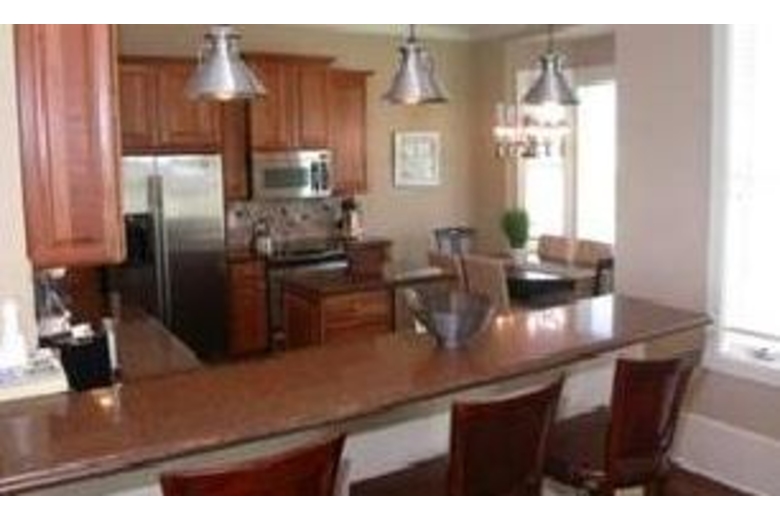 The first floor has entrance with laundry room and garage. Second floor is the living/dining/kitchen area with hardwood floors, granite counter tops, stainless appliances, 30" tv, dvd, vcr, sound system. 1 Queen bedroom with bath and patio with gulf views. The third floor has 1 king bedroom, 1 set of bunks and 1 bath. Leisure room with large deck, sleeper sofa with very nice gulf views is on the top floor.Surrounding Description