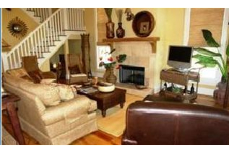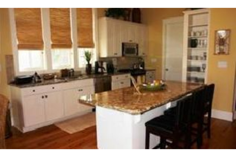 The dining area seats 8. The kitchen has a large island bar that seats 3 for extra dining, granite countertops, and stainless appliances. There is a laundry room to take care of your vacation needs. The stairwell landing has a small study area.Surrounding Description