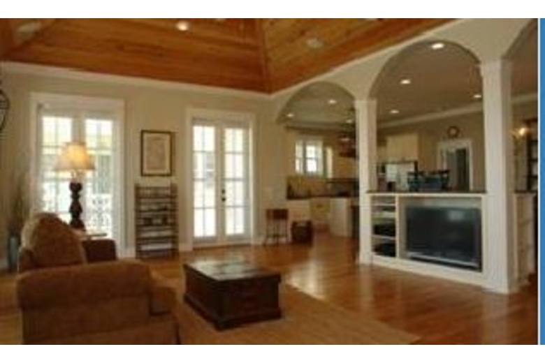 Main living area has a 40" Plasma tv, beautiful wood ceilings & fireplace. The kitchen has stainless appliances, granite countertops, and the dining area is adjacent to kitchen with island bar for additional seating.Surrounding Description