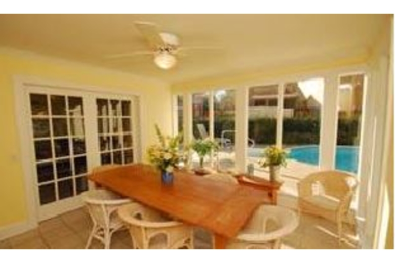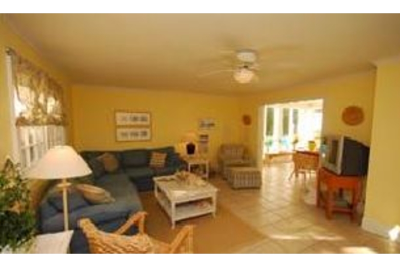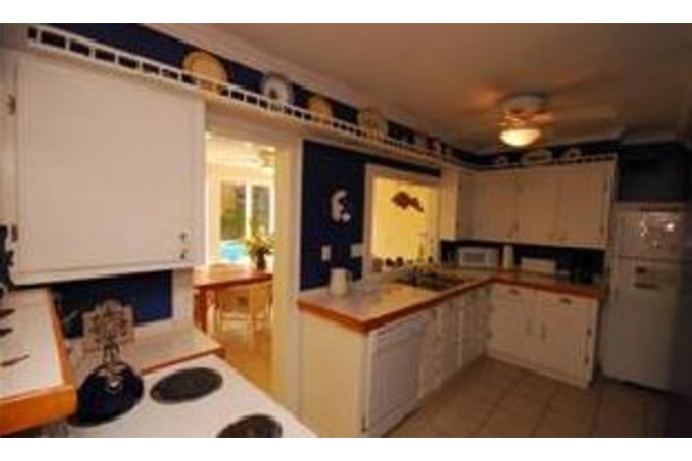 The living area has a 30" tv, dvd, vcr, and a sleeper sofa. The dining table in entrance foyer seats 4 with additional dining in enclosed patio with pool view that seats 6. The kitchen has all modern appliances. There is a laundry room for all of your vacation needs.Surrounding Description