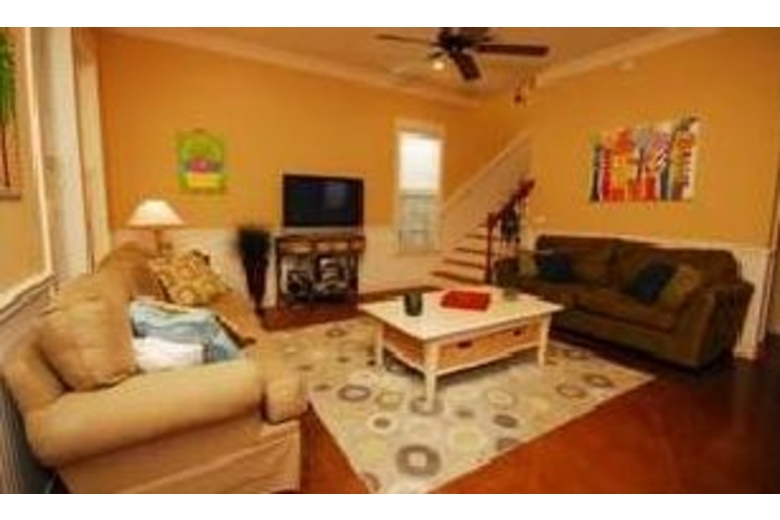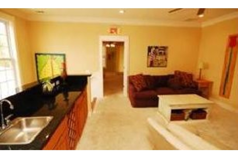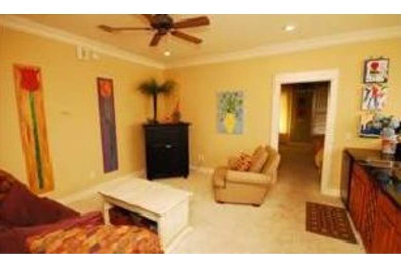 With four bedrooms, three and a half baths this 2600 square foot home features a fully equipped kitchen with microwave for quick meals or snacks, washer, dryer, Jacuzzi tub in master bath plus private patio with hammock, sofa sleeper in living area, big screen TV, DVD, VCR, stereo, Playstation, front porch with oversized swing plus second living area with sofa sleeper and wine bar with refrigerator and sink.Surrounding Description