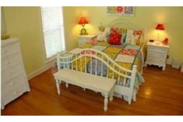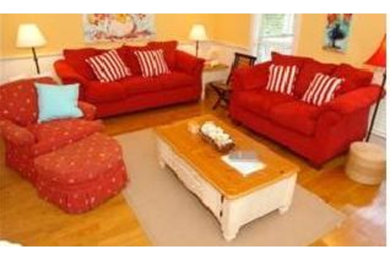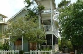 The main floor features a large wrap-around screened-in porch with plenty of chairs and rockers and a table for outside dining. The inside is open with a spacious, fully-furnished kitchen, dining area, and living room. A laundry area is off the hall plus a full bath. The cheery first floor bedroom has twin beds and a door to the screened porch. On the second floor you'll find two roomy and colorful bedrooms with queen beds, their own bathrooms, TV, and doors out to the porch with its comfy chairs and a table for enjoying a cup of coffee or even a private meal. You can relax in the jacuzzi tub off the master bedroom. Go up the stairs to the loft and find a great area for the kids or a get-away for adults with TV and a wet bar boasting a sink and fridge. Each end of the loft has decks overlooking the lovely homes and streets of the community. The outside shower is a convenient way to wash away the sand. There are bikes for adults and children plus water toys for the pool or beach.Surrounding Description