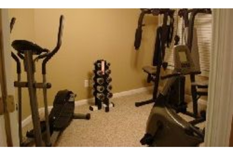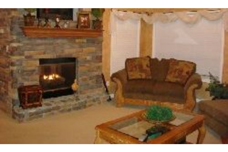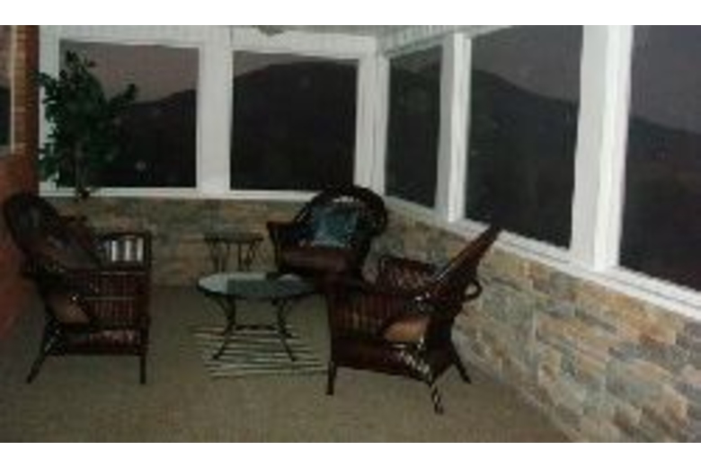 This home has six bedrooms and three and a half bathrooms. In the game room you will find a pool table, a game console, and a ping pong table. There is a fitness room with a stationary bike, weights and more. In the living room there is comfortable furniture and a stone fireplace. There is a screened in porch to enjoy the mountain views.Surrounding Description