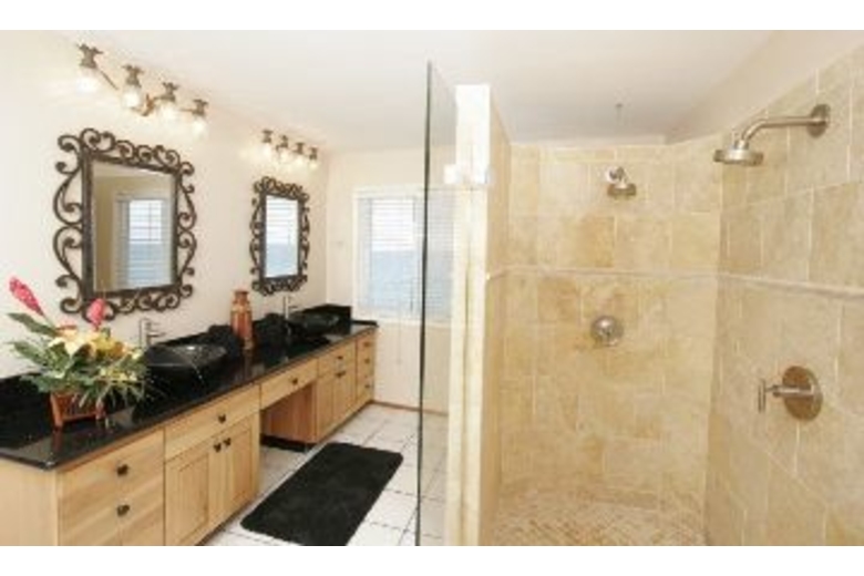 This fabulous oceanfront estate-home has a 40 ft. natural lagoon-type lap pool with 4 waterfalls, a small sandy beach area, and ocean access for swimming. There are morning and afternoon sunning decks. This 5 bedroom (plus Jacuzzi room that includes 2 twins for extra guests), 5 bath home sleeps from 10-14, and is walled and gated for privacy. 6000 sq. ft. under roof. Every room opens to the ocean. Home has 2 full kitchens, pool is private and can be used for nude sunbathing, Small beach in front of home, pool is a natural long lap pool with waterfalls, lots of sun decks, home is walled and gated for privacy. Home has been all remodeled in 07 with new cabs/black granite counters, vessel sinks, new travertine showers.