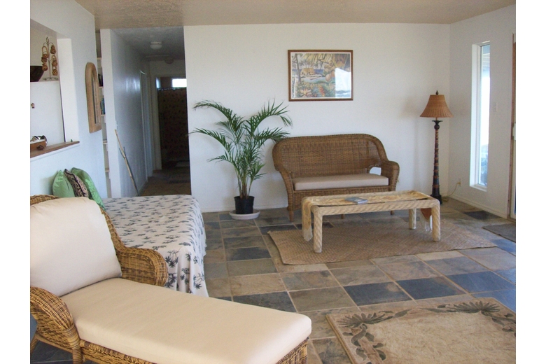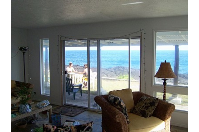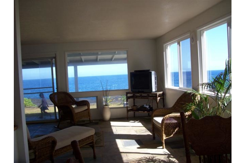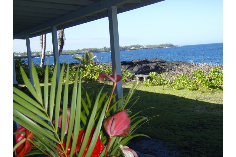 The Dolphin Bay Home on the Puna Coast of the Big Island of Hawaii consists of 3 bedrooms, 2 bathrooms. This spectacularly oceanfront property is located just 20 minutes south of Hilo on the Big Island of Hawaii in a quiet, coastal community known as Hawaiian Paradise Park, on one of the loveliest bays in East Hawaii where you can walk for miles and see nothing but pristine coastline and lush forests. Here you will experience breathtaking sunrises, cascading rainbows, beautiful lava formations, dolphin and whale watching, all from the comfort of your Alohahouse. The closest towns are Keaau and Pahoa for groceries, gas, and restaurants. This is a great spot to set up base for your Big Island adventure because there is nothing better than coming back to your Hawaii oceanfront vacation rental home away from home after spending a day of exploring - whether it be hiking Volcano National Park, snorkeling at the Kapoho tide pools, surfing at Pohoiki, soaking at the Ahalanui Hot Pond, going to the zoo or botanical gardens, visiting one of the many waterfalls, or visitng wonderful Hilo town!This quiet and serene property has everything including a length of the house oceanfront lanai. Furnished island style with rattan and wicker, slate tile floors, ceiling fans, color satellite TV, CD stereo and washer/dryer. Designed to meet all your vacation needs. The Dolphin Bay Home sleeps up to 7 people in 1 king, 1 queen, 1 double and 1 twin in 3 bedrooms. There is so much to do and see on the Big Island - here are the highlights: