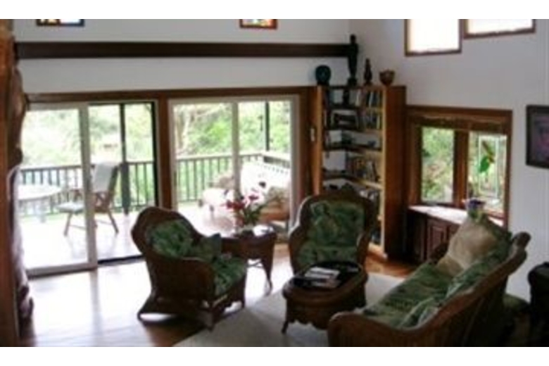 All the bathrooms boast Italian tile with premium fixtures as well as high end amenities from furniture to artwork throughout the house. There is a large ground floor lanai for barbecuing your favorite Hawaiian fish with a work station, dinette set and a second hammock. The master bedroom, with French doors opening onto the lanai, has an attached bathroom where a waterfall spigot fills the tub. This bathroom also opens onto the lanai where there is a large dining set, hammock and futon sofa. The loft has a king bed that is easily converted into two extra long twin beds if necessary. WiFi has been added for your convenience.Surrounding Description