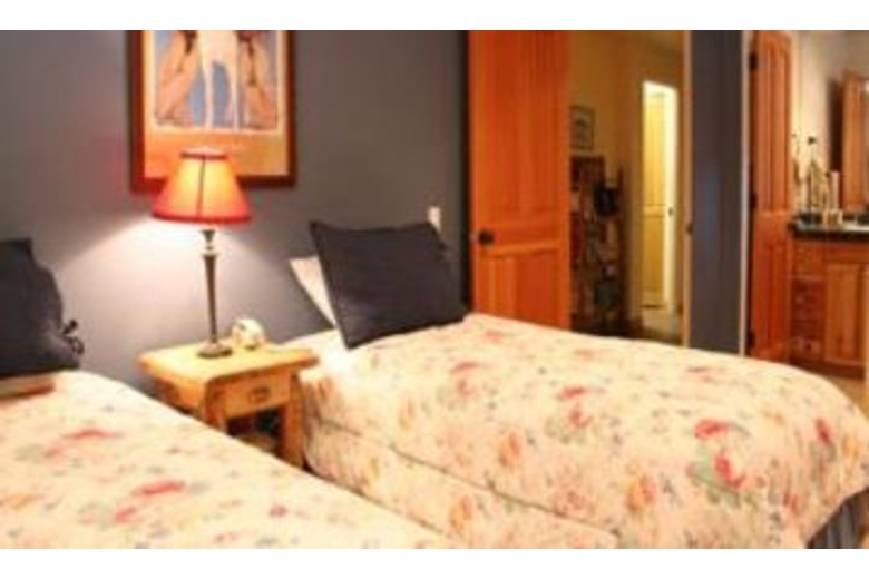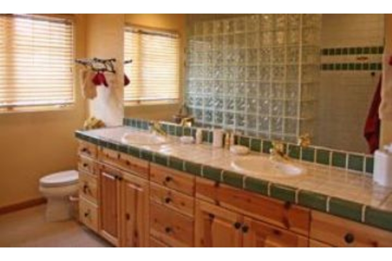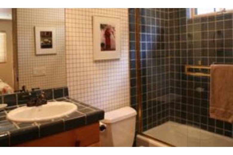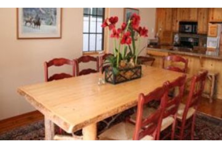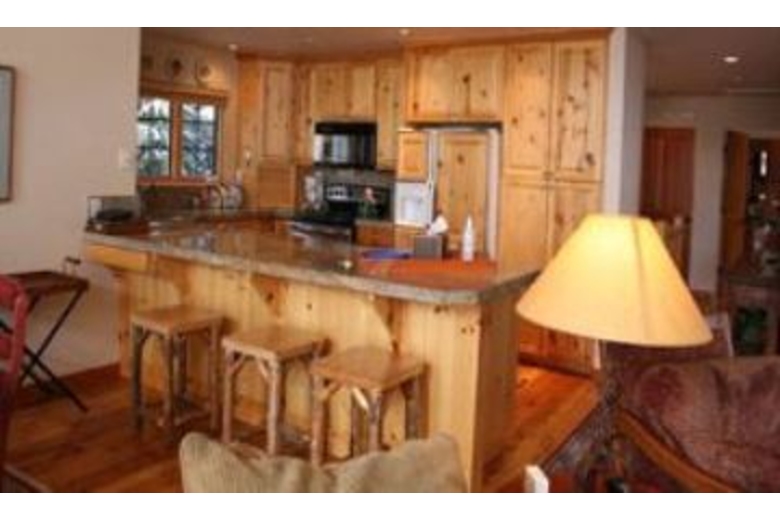 The great room features a floor-to-ceiling river rock gas log fireplace and windows looking up on Baldy and access to the southwest facing deck with nice outdoor dining furniture. The very comfortable living areas are placed on the upper level to take advantage of the light and views. Each bedroom has its own full bathroom, the master has access to the deck and hot tub along with a walk-in fully tiled shower with 2 shower heads and the two of the lower level bedrooms have patios. This home will sleep 8 people, with a king bed, a queen bed and two sets of bridgeable twin beds. Pine doors and furnishings are complemented by polished distressed-hickory floors with colorful area rugs. The high gloss pine slab dining table, to seat eight, was constructed especially for the home. The surround-sound stereo system is piped to both the hot tub deck and the summer dining deck facing Bald Mountain. The comforts and amenities of the home are enhanced by the proximity of the Prospector Club, offering a nice swimming pool and four tennis courts. The home itself offers central A/C, a private hot tub and a laundry room with full size washer/dryer. This home is located in the heart of Warm Springs Village. The Warm Springs day lodge and lifts is a two blocks walk. Bedding: (master) king bed, (second bedroom) two twins or king, (third bedroom) two twins or king, (fourth bedroom) queen bed.Surrounding Description