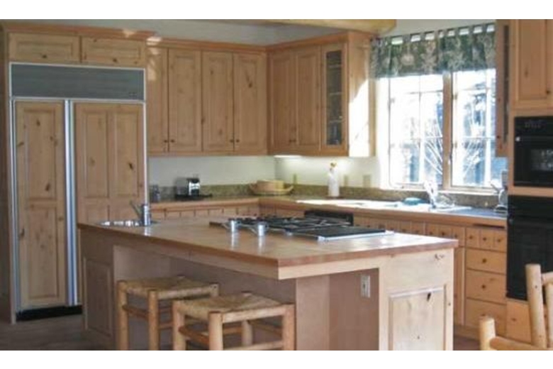 A 4,000 square foot, two-story, 4+ bedroom, 4 1/2-bath home in a private community just south of Ketchum. The master has a king bed and is on the ground floor with a Santa Fe-style fireplace, French doors to a side patio and a spacious marble tiled bath and separate shower.
