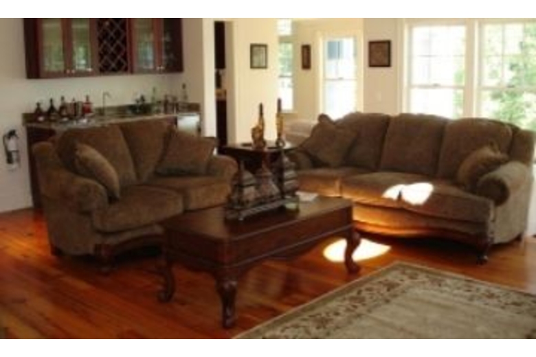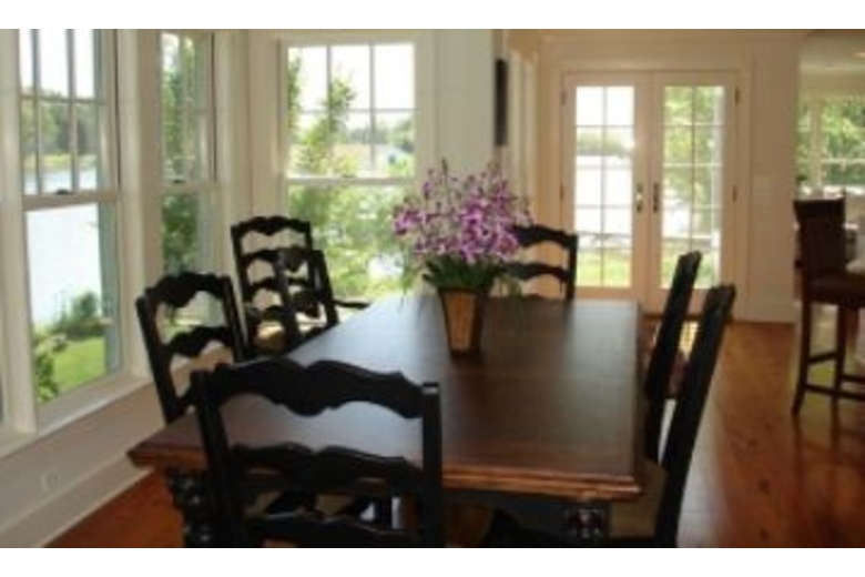 This well appointed home with three bedrooms, three full bathrooms, and two half bathrooms offers hardwood floors throughout the living, dining and kitchen areas . The living room has comfortable couches to sink into as you rest after a fun filled day of kayaking. The bright and airy dining room offers fabulous water views from the large windows as you sit around the wood table that will seat six guests. The kitchen is fully equipped with all your cooking needs perfect for those looking to dine in. The plush bedding, which will accommodate eight guests, includes one king bed, three queen beds, and a crib. Step outside onto the second floor porch and breathe in the fresh air as you watch the wildlife play along the banks of the cove. Take the kids and splash around in the private outdoor pool.Surrounding Description