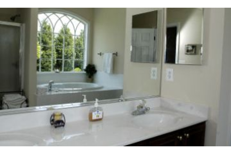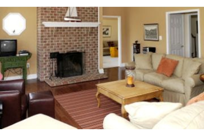 This beautiful vacation home offers four bedrooms and three and a half bathrooms. This home is nicely decorated and has hardwood floors and plush carpeting. The living room has well upholstered furniture and a wood burning fireplace. The formal dining room has a lovely wood table that will seat eight guests. The full kitchen has custom cabinetry and a table that will seat six guests. The bedding, which will accommodate eight guests, includes one king bed, two queen beds, and two twin beds. Enjoy watching television or playing games in the game room. Dive into the private pool to cool off after a fun filled day of biking.Surrounding Description