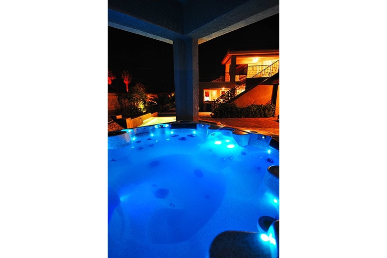 A Custom pool with cascading water features and a separate above ground Jacuzzi with 40 jets that is hot 24/7 - no extra charge.