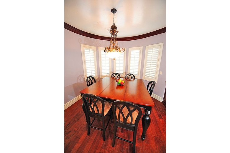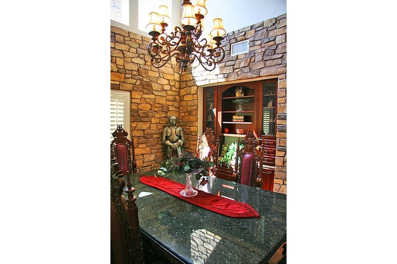 The Formal Dining room has a Custom Granite Dining table that seats 10 and functional for all of your catering needs and includes a Butler’s Pantry with formal dishes and stemware.