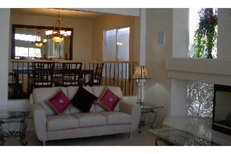 This fabulous vacation villa is close to the Strip and features beautiful decor and furnishings! Be inspired by the tranquility of the red rock waterfall. Rejuvenate your mind and body under the covered patio of this executive vacation villa.