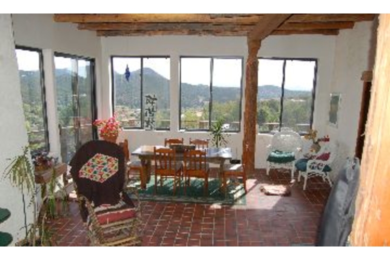 Rich in Santa Fe style with saltillo tile, brick and hardwood floors throughout. Cerro Gordo has a large living room, dining room, sun room, eat in kitchen, laundry room, three kiva fireplaces and a two car garage. The best part is the porch that wraps around the entire home with 360 degree views. One of the most beautiful views in Santa Fe.