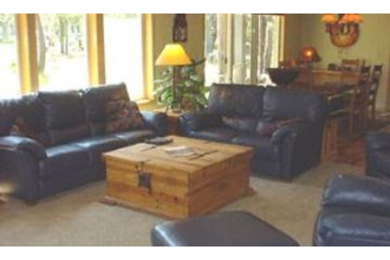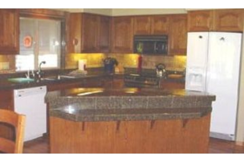 There are two master suites, one of which has a double shower and soaking tub in the bath. All bedrooms have TV/VCRs and the living room has a DVD player with surround sound. Great room with vaulted ceilings, river rock gas fireplace and wet bar. Gourmet kitchen with granite counters and a great deck for entertaining. Complimentary High Speed Internet Access is available to guests.Surrounding Description