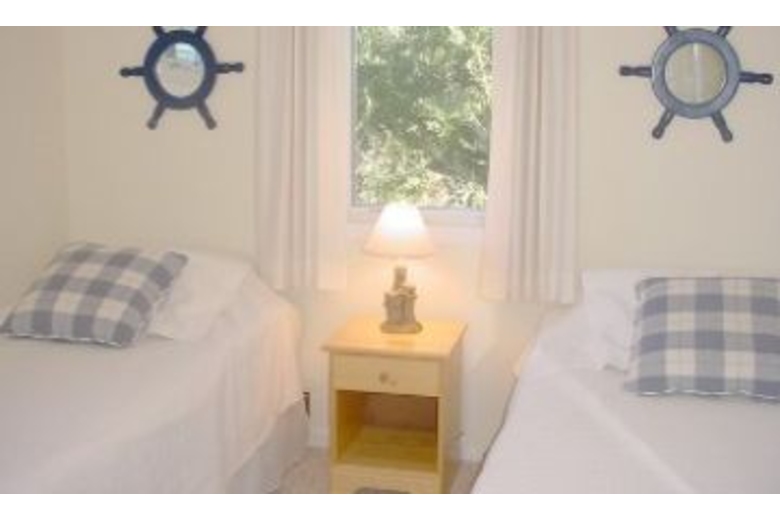 This terrific vacation home offers five bedrooms and three and a half bathrooms. The spacious living room is well lit with natural sunlight that flows through the large windows. Sit down to watch satellite programming while warming next to the gas fireplace. The dining room has wood floors and a large table that will seat eight guests at mealtime. The kitchen is fully equipped and features solid surface counters and a breakfast bar with additional seating. The plush bedding will sleep twelve guests comfortably with the one king bed, three queen beds, two twin beds, and one queen sofa sleeper offered. Step out onto the deck and enjoy the view of Tidal Creek or take pleasure fishing from the dock.Surrounding Description