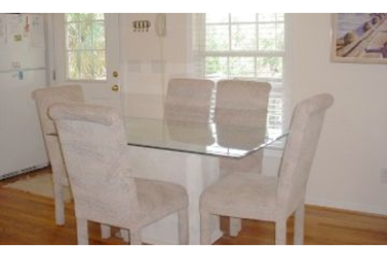 This is a four bedroom, three and a half bath duplex that sleeps eight. The living area has a TV with Direct TV, a VCR, and a DVD player. Cook your family's favorite foods in the fully equipped kitchen and enjoy them in the dining area set for five. Relax out on the screened porch and enjoy a good book and your preferred beverage. Bedding includes three queen size beds, one day bed, and one trundle bed.Surrounding Description