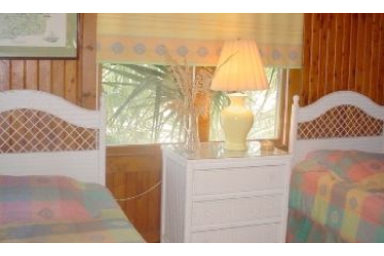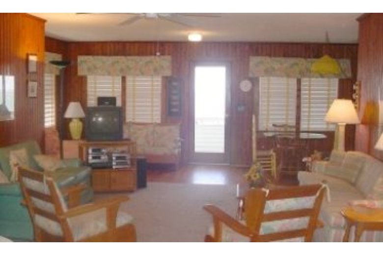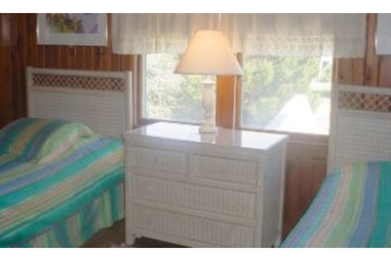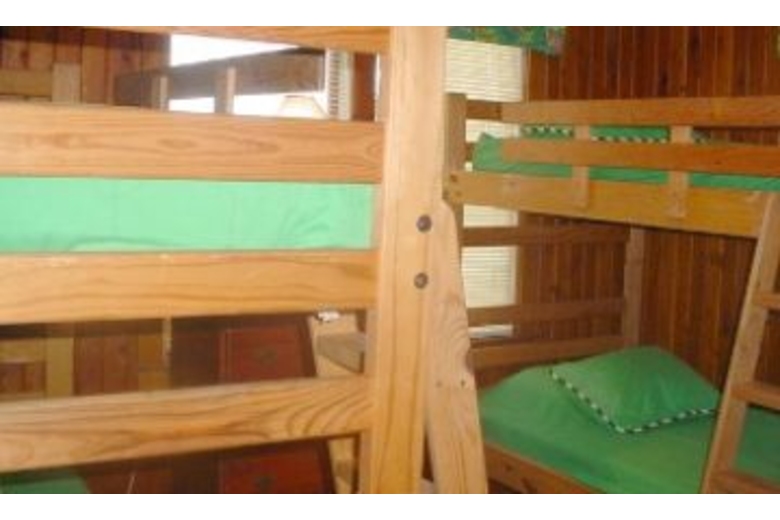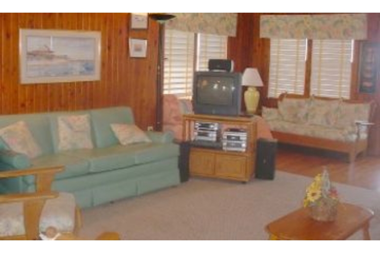 In this five bedroom, three bath home you will find a barbecue grill and outside shower. The first bedroom has a queen bed and the second bedroom has two twin beds. The third and fourth bedrooms also come with two twin beds in each. The fifth bedroom has two bunk beds (four twin beds). This home can comfortably sleep up to twelve people. The living area has a DVD player, VCR, ceiling fan and cable TV. The fully equipped kitchen has a dishwasher, coffee maker and microwave. The dining area has a bench, table and four chairs.Surrounding Description