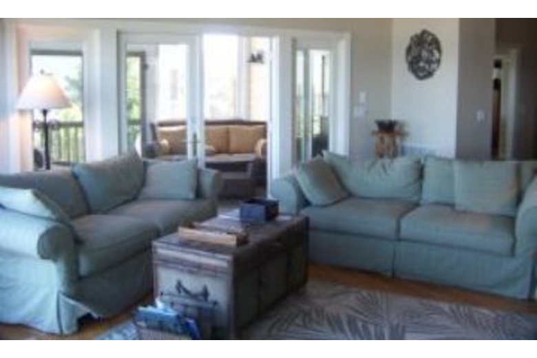 This four bedroom and three and a half bathroom home is luxurious with hardwood flooring, comfortable furnishings, upscale decor, cathedral ceilings, and lots of space for entertaining. There are five queen beds and a futon in the loft providing accommodations for up to twelve guests. Sliding doors provide access to the large deck and makes you feel like the beach is truly at your feet. Other features include cable TV, DVD player, VCR, wireless Internet access, central AC, and a gas grill for outdoor barbecues. The gourmet kitchen is custom in every way and boasts stainless steel appliances, a huge center island with breakfast bar and wine cabinet, and beautiful countertops. After a fun filled day on the beach, relax on the deck and sip your favorite beverage with your guests. In the winter months, enjoy the added warmth and cozy ambiance that the wood burning fireplace brings to this incredible home.Surrounding Description
