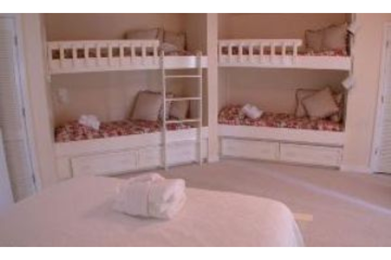This four bedroom, four and a half bath home comes with high speed internet and a swimming pool. The master bedroom has a king bed plus a Jacuzzi tub in the master bath. The second bedroom also has a king bed plus two bunk beds (four twin beds). The third bedroom has a queen bed and in the fourth bedroom there is a double bed. The dining area comes with a table and seating for ten people. There are hardwood floors throughout the main part of the home. Also in this home are six TVs, four VCRs, three DVD players, a stereo and media room.Surrounding Description