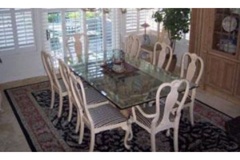With five bedrooms plus five and a half baths, you are sure to find room for everyone in your group. The dining area comes with a glass table and eight chairs. In the fully equipped kitchen there is a breakfast bar with extra seating plus a coffee maker and dishwasher. The master bedroom comes with a king bed, Jacuzzi tub and ceiling fan. In the second bedroom you will find another king bed. In the third bedroom there is a queen bed. The fourth bedroom has two twin beds. In the pool house there is another queen bed plus a full bath. There is high speed internet available plus six TVs and two DVD players.Surrounding Description